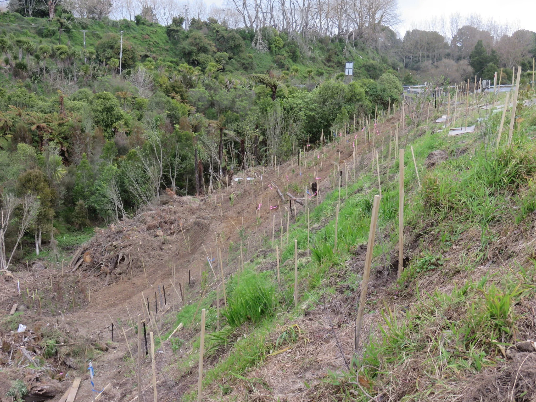 Now that the Waikato District Council has arranged for some of the pine trees to be removed, due to safety concerns, from the Tamahere Reserve in Tauwhare Road the Tamahere Mangaone Restoration Trust have started to replant in the areas available to us. To date we have planted 825 new native species with about 300 more to be planted. There is still work to be done to repair the damaged boardwalk in the reserve, this is work the Waikato District Council will ensure gets done. There is also work required to remove those logs that have fallen into the bottom of the reserve so as to maintain a good natural flow of ground water which will drain into the Mangaone Stream. It is likely no other new planting will be done until this work is completed.